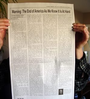 That column was recently run as a full page ad in a major local newspaper; the effect was instantaneous and electric. Average Americans became concerned and wanted to know more because the content of this full page running of Greg's column scared people.