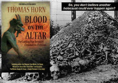 But now, what was old is new again, and as a militant spirit of evil pushes through the veil toward a final supernatural conflict (in which blood will flow to the horses’ bridles), violent clashes over matters of faith are once more boiling around the globe. Consequently, brutality wrought by the final Antichrist and his end-time Christian assassins will soon make the combined depravities of those wars mentioned above look like child’s play. When he raises his fist, “speaking great things…in blasphemy against God, to blaspheme his name, and his tabernacle, and them that dwell in heaven” (Rev. 13:5–6), at his right hand will stand those devoted house-of-worship attendees who are vividly described in the final book of the Bible as “drunk with the blood of the saints, and with the blood of the martyrs of Jesus” (Rev. 17:6) as they dance and sing “in the spirit” of their mega-church “habitation of demons, and the hold of every foul spirit” (Rev. 18:2).